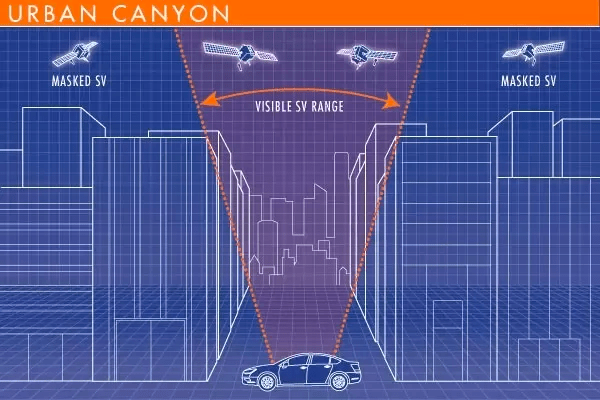 Navigating urban canyons is a challenge for conventional satellite-based systems. Source: Quora