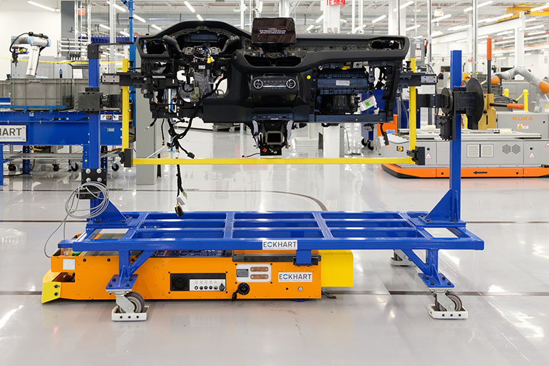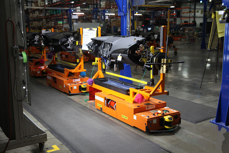 Modern automated guided vehicles combine the capabilities set of autonomous mobile robots – flexibility, safety and scalability – with the load capacity of towline conveyors. As such, they provide manufacturers with the best of both worlds, a cost-effective, flexible, heavy-load conveyance solution for production build lines designed for manufacturing as it is done today, and that can meet the manufacturing demands of tomorrow.